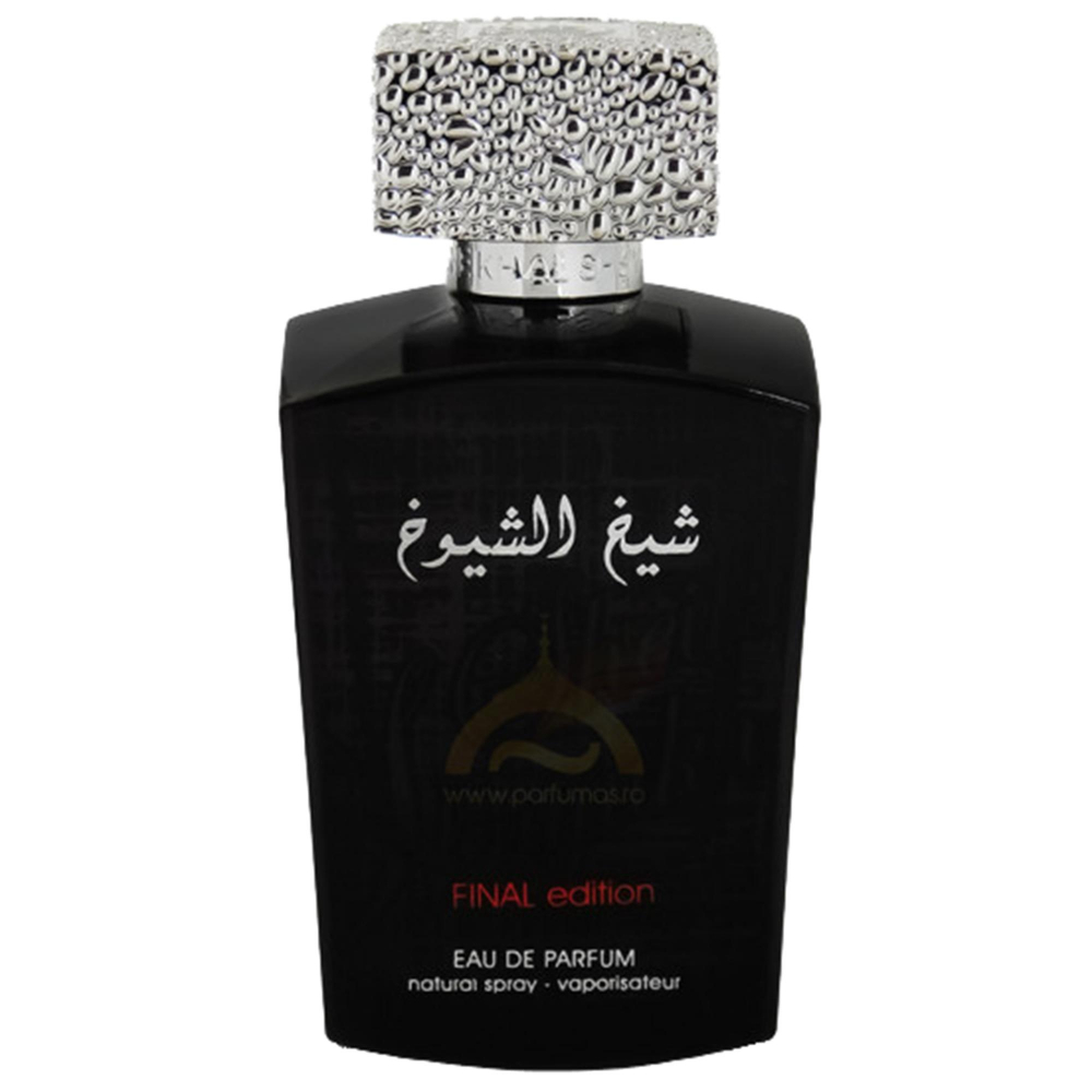 Sheikh Al Shuyukh Final Edition este puternic si intens, cu oud, pielarie si condimente. Impunator si memorabil.
