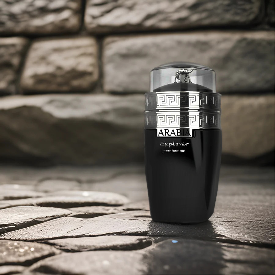 Descriere Arabia Explorer Călătorește în lumea exotismului și alătură-te acestei căutări olfactive încântătoare! Arabia Explorer este un parfum barbătesc ce te îmbie cu o combinație proaspătă și condimentată, menită să-ți energizeze spiritul și să-ți trezească curiozitatea. Note olfactive Notele pline de viață ale acestui parfum te vor captiva instantaneu. Bergamota și piperul roz îți vor oferi o explozie de prospețime și vitalitate, în timp ce acordurile de mar verde și ananas adaugă o dulceață subtilă și savuroasă. Coacazele negre încântă cu un iz misterios, iar patchouli-ul și pielea emană un aer masculin și senzual. Iasomia se dezvăluie discret, completând perfect acest tablou olfactiv rafinat. Note de top: Bergamota, Piper roz, Mar verde, Ananas, Coacaze negre Note de mijloc: Patchouli, Piele, Iasomie Note de baza: Chihlimbar, Mosc, Muschi Sticla luxoasă a parfumului Arabia Explorer este o adevărată operă de artă. Cu un capac transparent, oferindu-ți priveliștea cămilei în miniatură, această sticlă elegantă și distinctivă completează întregul concept al aventurii și al explorării. Fiecare pulverizare te va transporta în mijlocul pustiului misterios, unde spiritele curajoase și aventuroase se simt acasă.