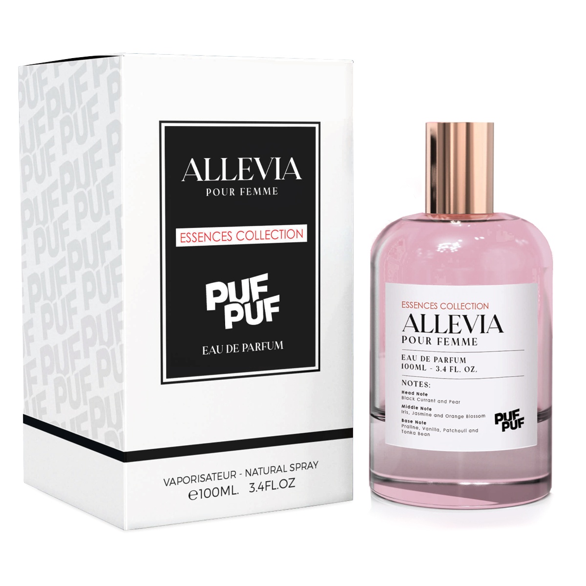 Note de varf: Coacaze Negre, Pere Note de mijloc: Iris, Iasomie, Floare de Portocal Note de baza: Praline, Vanilie, Patchouli, Boabe de Tonka Allevia de la PufPuf – O Evadare în Eleganță și Delicatețe Allevia este parfumul care întruchipează bucuria pură și rafinamentul senzual. Fiecare pulverizare este o invitație la momente de răsfăț, grație și armonie, perfect pentru cei care își doresc să radieze feminitate și eleganță. Debutul fructat te întâmpină cu dulceața catifelată a coacăzelor negre și suculența perei, o deschidere vibrantă și delicată care îți învăluie simțurile într-o prospețime plină de viață. Inima parfumului este o simfonie florală irezistibilă, în care irisul sofisticat, iasomia senzuală și floarea de portocal radiantă creează un buchet de o frumusețe captivantă, ce evocă feminitate și rafinament. Baza dulce și profundă împletește notele gurmande de praline și vanilie cu accentele pământii și senzuale ale patchouli-ului și boabelor de tonka. Această combinație lasă o urmă caldă și memorabilă, perfectă pentru momentele care cer un strop de magie. Allevia de la PufPuf este mai mult decât un parfum – este o experiență olfactivă sofisticată, creată pentru cei care își trăiesc viața cu pasiune, eleganță și un strop de fantezie.